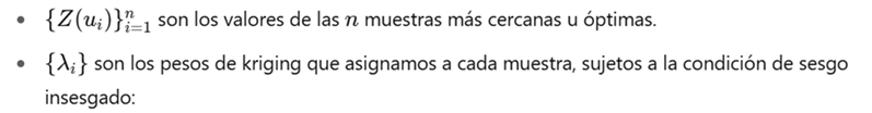 Para el caso de ecuación kriging ordinario, se define como sigue: